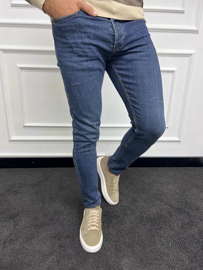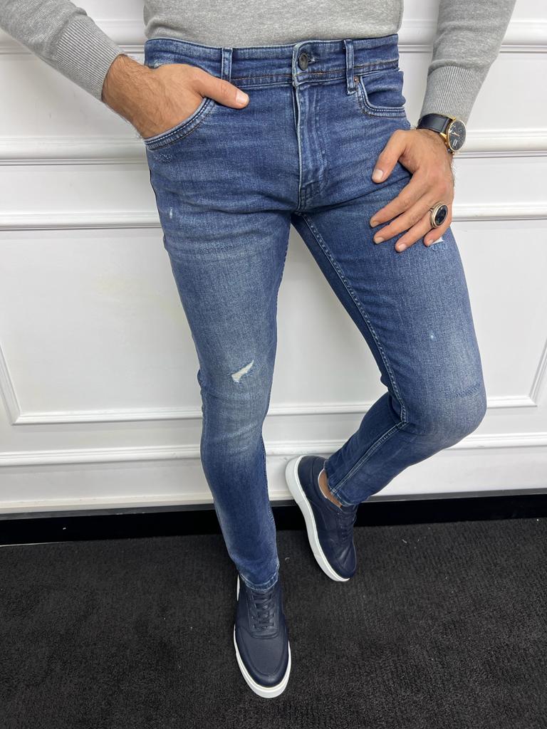 Leon Slim Fit Ripped Detailed Blue Jeans